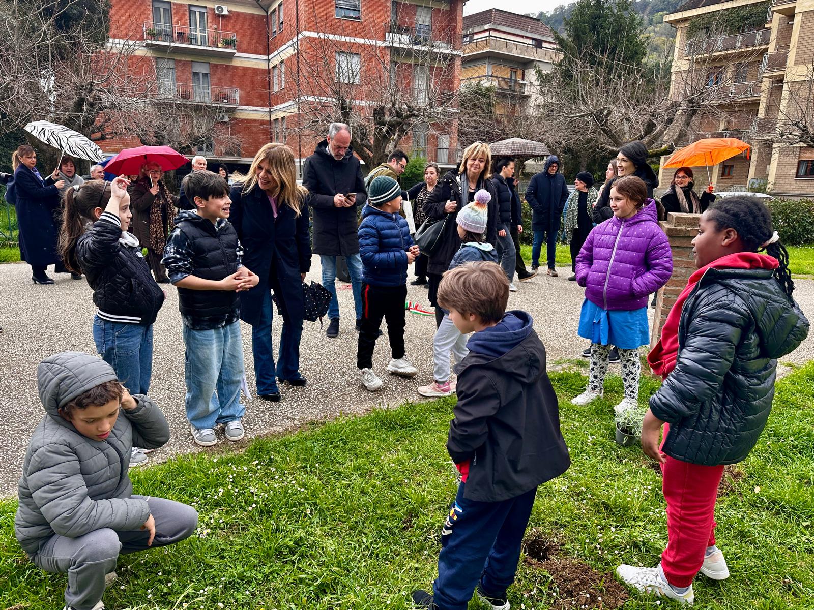 “Rendere le città più verdi e accessibili – ha detto Daniela Melandri di Univercities – è lo scopo della nostra associazione e con il progetto Divaircity abbiamo voluto dimostrare come l’inclusione possa essere uno degli strumenti principali per combattere i cambiamenti climatici. Questo giardino e questa esperienza sono collocati in progetto internazionale con altre cinque città e voglio dire, con molta fierezza, da coordinatrice e da italiana che Orvieto ha giocato ruolo fondamentale nel consorzio europeo grazie a voi, grazie ai bambini, che hanno saputo dare spunti ai grandi, hanno spiegato le loro esigenze in maniera fantastica e oggi hanno ispirato altre città europee. Dedichiamo questo giardino ad Angela Augusti del Cnr, una persona importante che ha contribuito a questo progetto e che oggi non c’è più”.