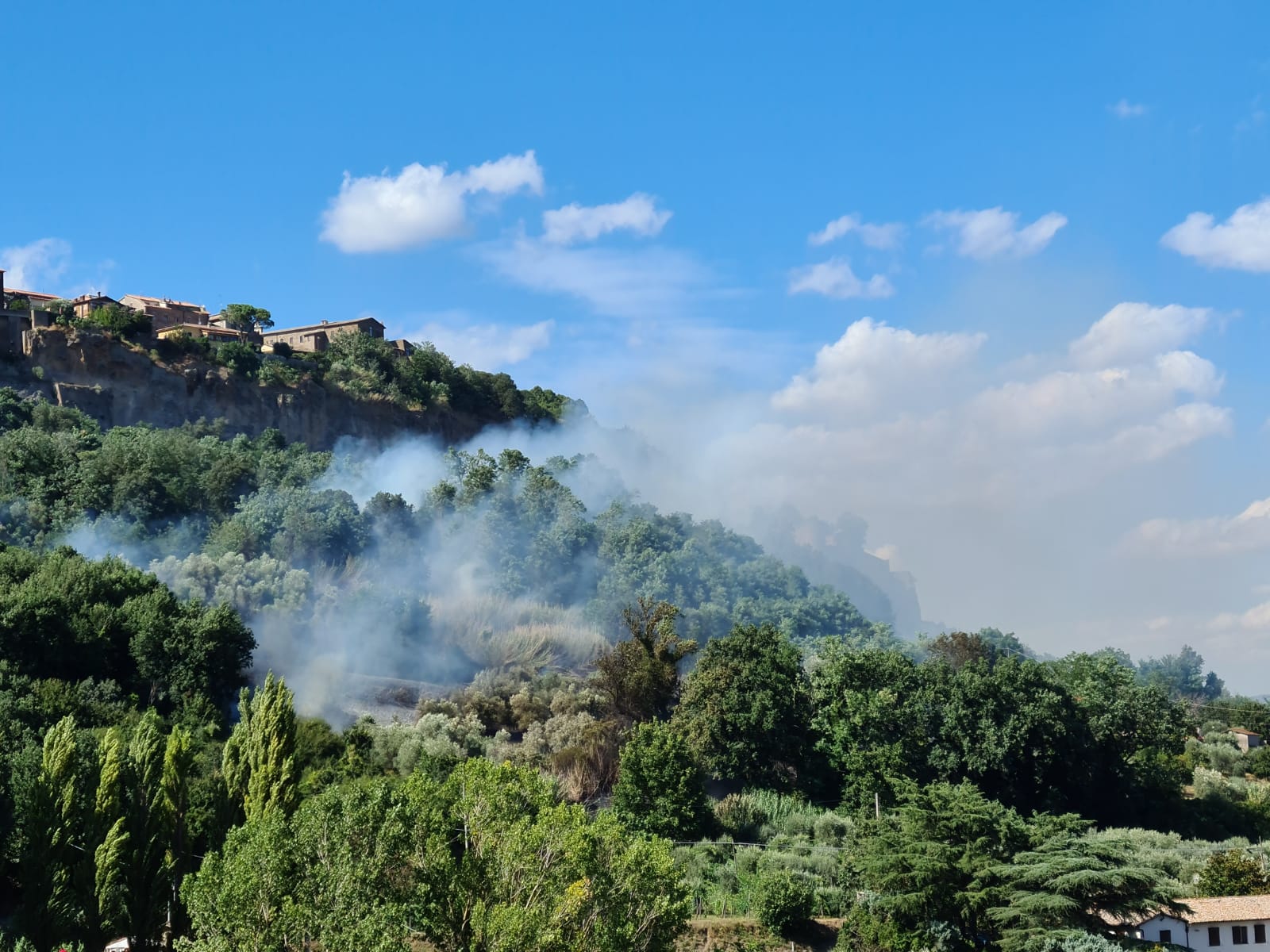 Incendio alle pendici della rupe di Orvieto, versante meridionale in località Cannicella. Situazione tenuta sotto controllo