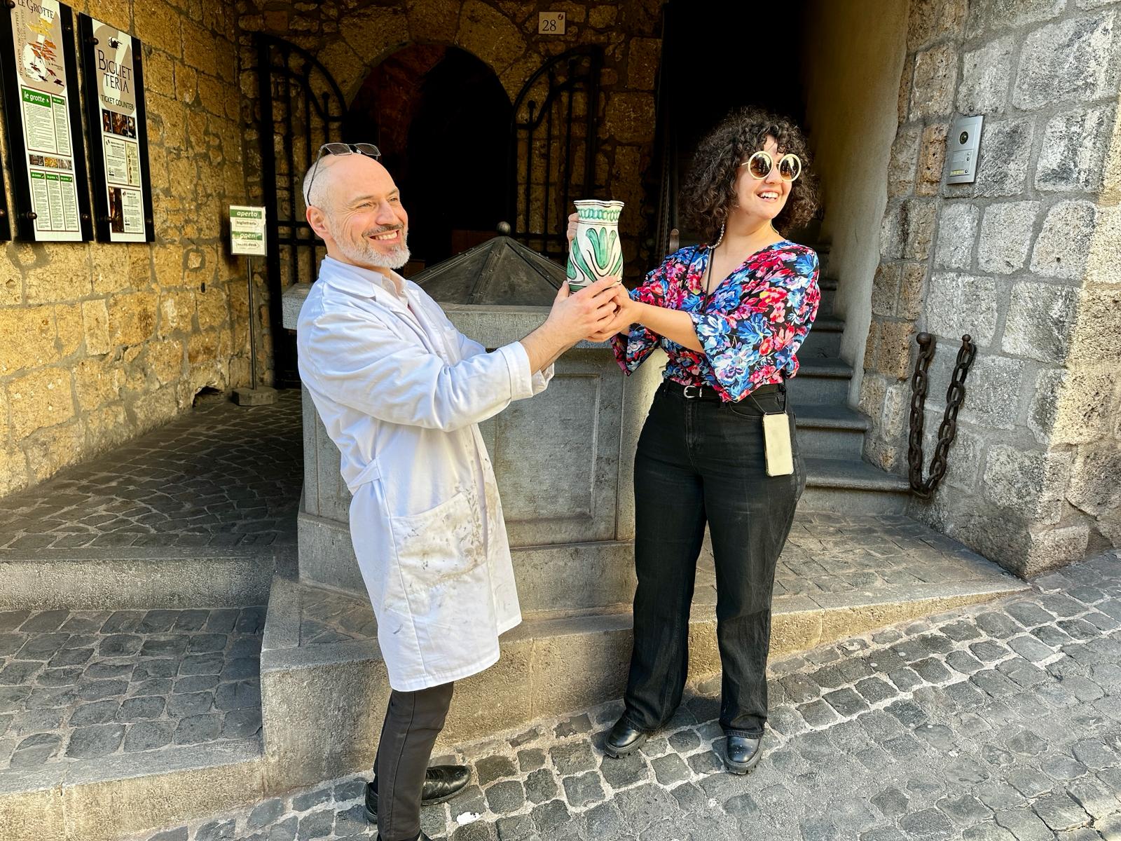 I tre “viaggiatori”, accompagnati dal team del Tic Festival, si sono cimentati in una serie di prove che li hanno condotti nei luoghi più significativi di Orvieto per scoprire e conoscere le tradizioni della città e con post e stories hanno raccontato le loro esperienze sui social. In Piazza Duomo hanno incontrato i tamburini del Corteo storico che li hanno sfidati a riprodurre l’iconico ritmo che accompagna la sfilata degli oltre 400 figuranti nel giorno del Corpus Domini. In Duomo hanno potuto ammirare la meraviglia della Cappella di San Brizio dipinta da Luca Signorelli, l’artista di Cortona che, oltre al compenso in denaro, per quello straordinario capolavoro fu pagato anche con il pregiato vino di Orvieto. La stessa “ricompensa” di cui sono quindi andati a caccia i tre creator che, dopo una sosta al Bar Montanucci, al Pozzo della Cava nel quartiere medievale, guidati da Marco Sciarra, hanno dato vita a una divertente sfida al tornio per realizzare e decorare una brocca in ceramica. Con il “trofeo” sono successivamente scesi in fondo al Pozzo di San Patrizio per riempirlo con “l’oro di Signorelli”, il vino doc di Orvieto offerto dal Consorzio tutela vini, di cui hanno potuto apprezzare infine le caratteristiche nella degustazione presso Bottega Vera, nel pieno dei festeggiamenti per San Giuseppe, patrono della città.