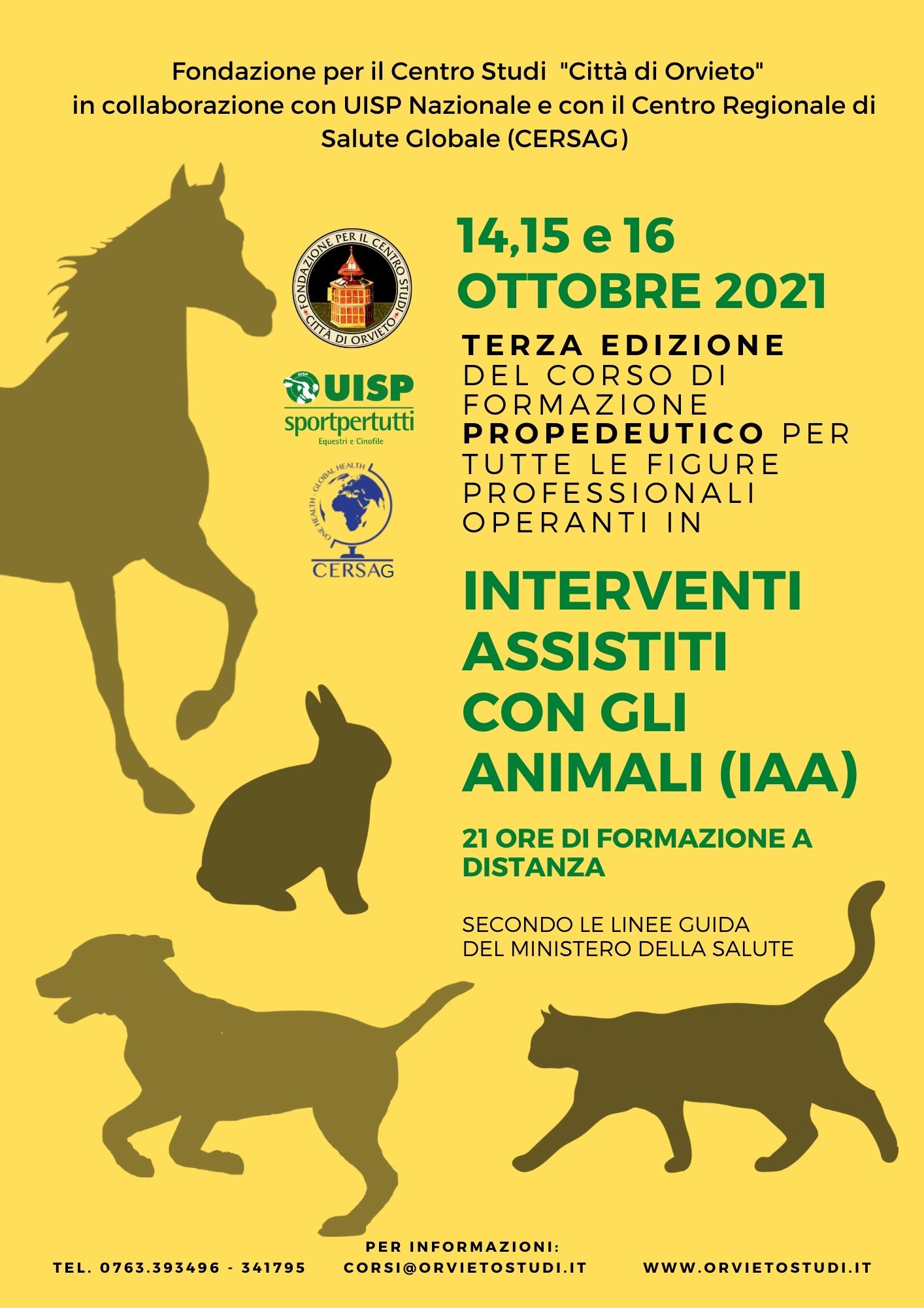 La Fondazione per il Centro Studi “Città di Orvieto” è stata riconosciuta dalla Regione Umbria come Ente idoneo all’erogazione di corsi di formazione in materia di IAA ed ha dato vita, quindi, già dal 2019 al primo centro autorizzato in Umbria. Uniformandosi alle indicazioni contenute nelle linee guida nazionali sugli IAA e nelle relative note del Ministero della Salute, la Fondazione si è dotata di tutti i requisiti indispensabili per l’erogazione della formazione in materia, quali la presenza di una Segreteria Scientifica, di un team di docenti qualificati e della collaborazione con strutture idonee ad accogliere gli allievi per lo svolgimento della parte pratica e del tirocinio obbligatorio nei percorsi formativi.