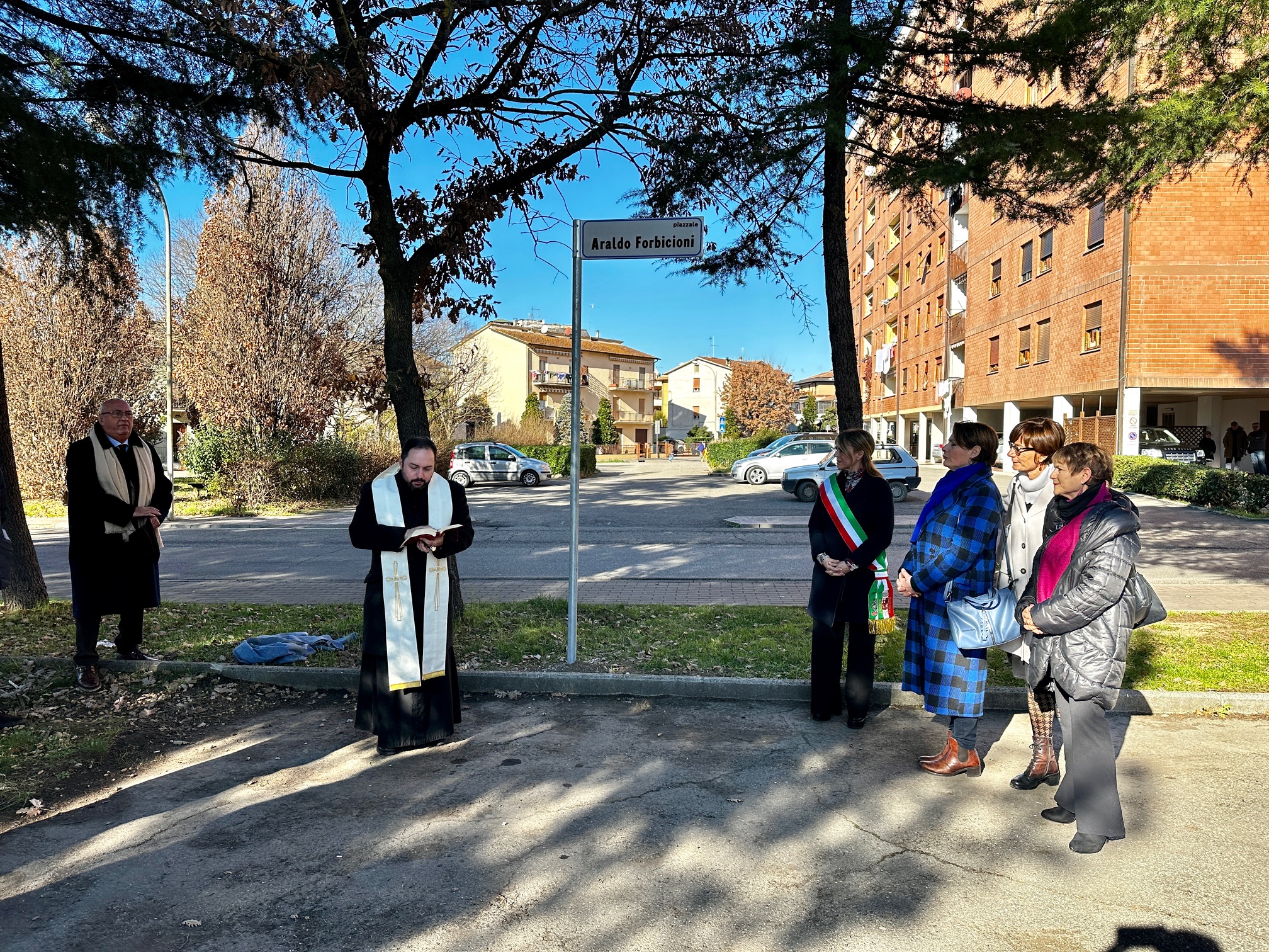 (COMUNICAZIONE) ORVIETO – Intitolato all’ingegner Araldo Forbicioni il piazzale antistante la chiesa di Maria Santissima Madre della Chiesa di Ciconia. Questa mattina, sabato 13 gennaio 2024, la cerimonia pubblica alla presenza, tra gli altri, del sindaco di Orvieto, Roberta Tardani, del vicesindaco Mario Angelo Mazzi, del sindaco emerito di Orvieto, Toni Concina, dei familiari di Araldo Forbicioni, e del consigliere comunale Stefano Olimpieri che aveva presentato la mozione per l’intitolazione di uno spazio pubblico all’ingegnere orvietano approvata all’unanimità dal consiglio comunale nel luglio 2023.