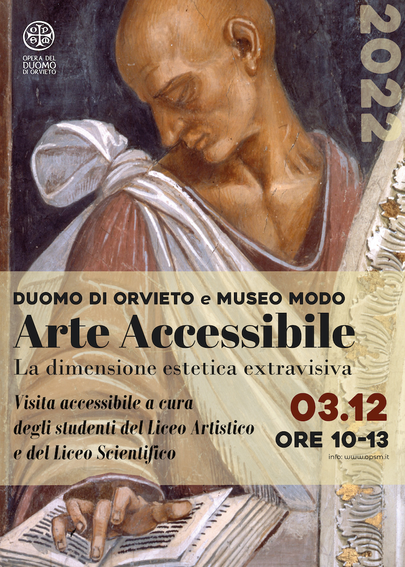 Domani, Sabato 3 dicembre, infatti, i riflettori si accendono sull’enigmatica figura ritratta nella Cappella Nova e identificata con Omero, torna ad essere testimonial del progetto Arte accessibile nel duomo di Orvieto e al MODO.