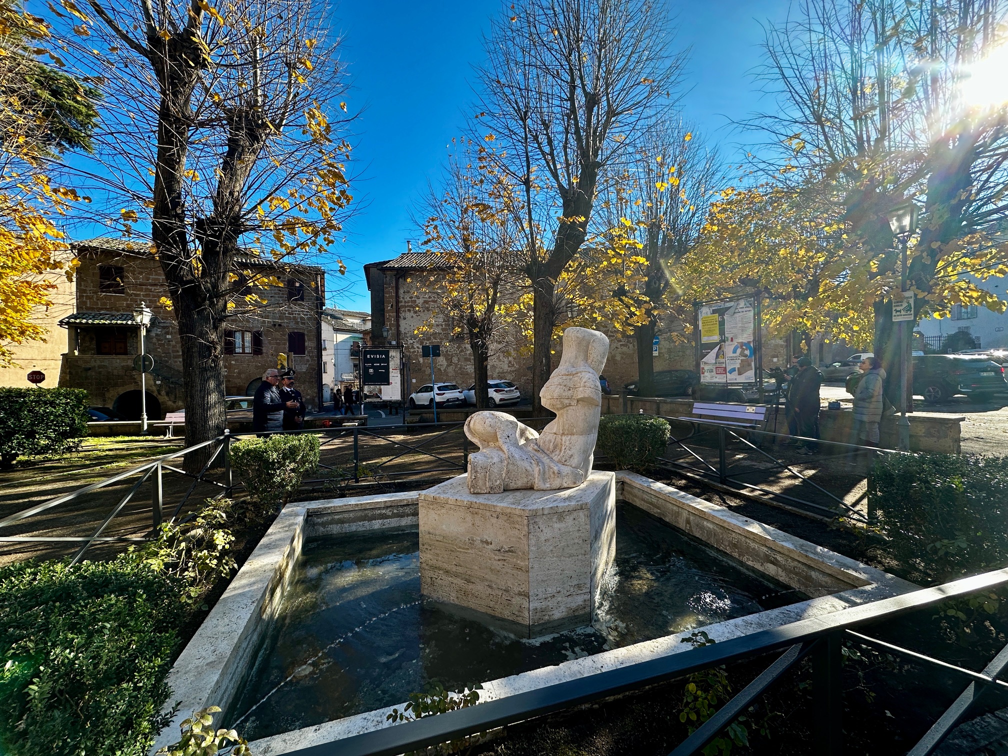Proprio in questi giorni, dopo l’installazione delle nuove panchine interattive che rappresentano i cinque valori della gentilezza, si è concluso anche l’intervento di recupero della statua che si trova nel giardino, una delle tre sculture che l’artista surrealista Jack Zajac donò alla città di Orvieto dopo l’Esposizione internazionale di scultura all’aperto che si tenne nel 1976 alla Fortezza dell’Albornoz.