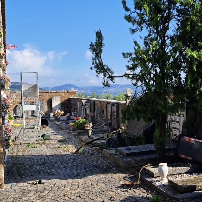 La pioggia e il forte vento hanno causato il cedimento di una pianta nel piazzale esterno del cimitero monumentale di Orvieto, bloccando l’ingresso, mentre all’interno è stata divelta la copertura impermeabile di alcuni edifici loculi che è caduta sulle tombe vicine. Allagato anche l’ufficio del custode. In corso le verifiche su altri alberi e piante dopo la caduta di alcuni rami. Per motivi di sicurezza e per consentire di ripristino dei luoghi, il cimitero resterà chiuso per tre giorni.