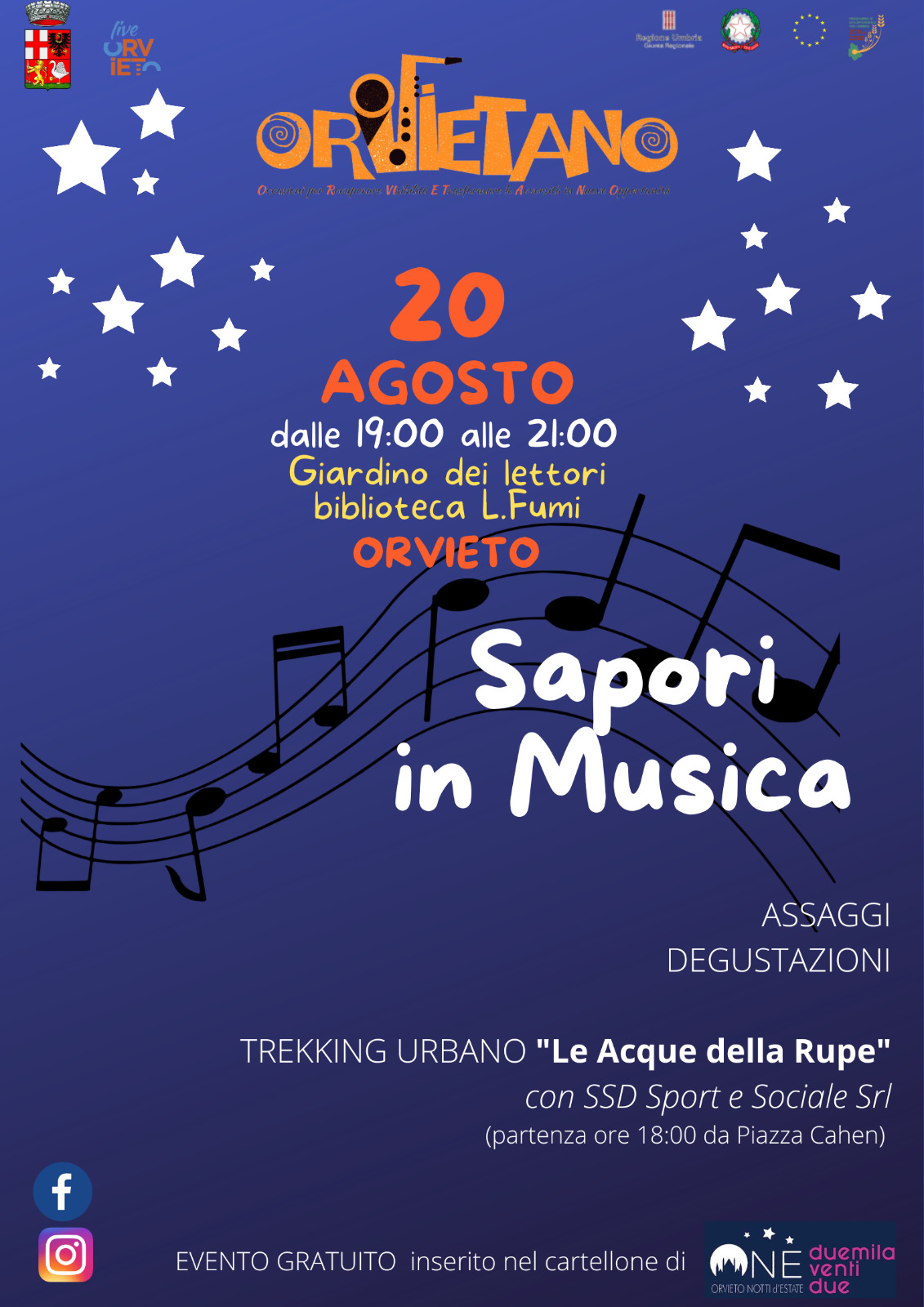 “Sapori in Musica” al Giardino dei Lettori della Biblioteca Pubblica “L. Fumi” di Orvieto. Sabato 20 agosto dalle h 19