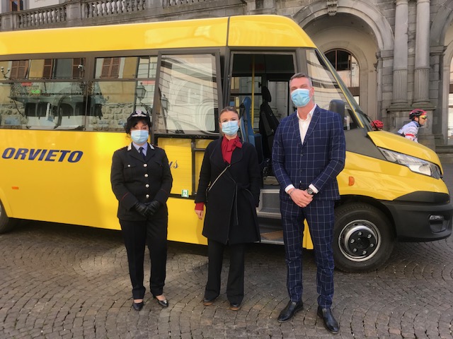 (ON/AF) – ORVIETO – E’ stato consegnato questa mattina all’Amministrazione Comunale il nuovo Scuolabus in dotazione al servizio di trasporto scolastico del Comune di Orvieto che servirà i collegamenti ai plessi scolastici di Orvieto scalo e Ciconia.