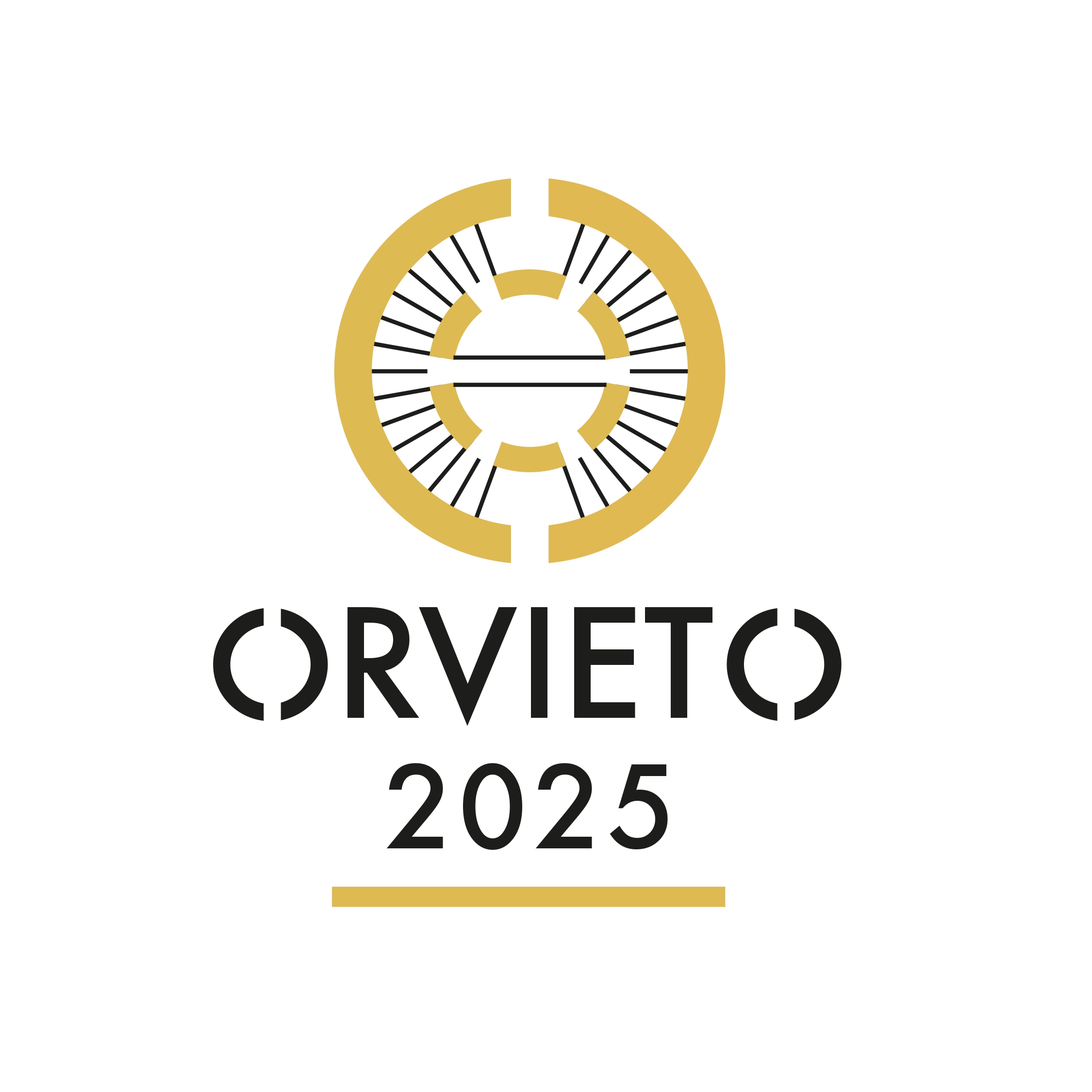 Il colore oro che tratteggia l’esterno e l’interno del logo e sottolinea la scritta 2025 è il frutto della campionatura del colore utilizzato da Luca Signorelli per dipingere la Cappella di San Brizio in Duomo.