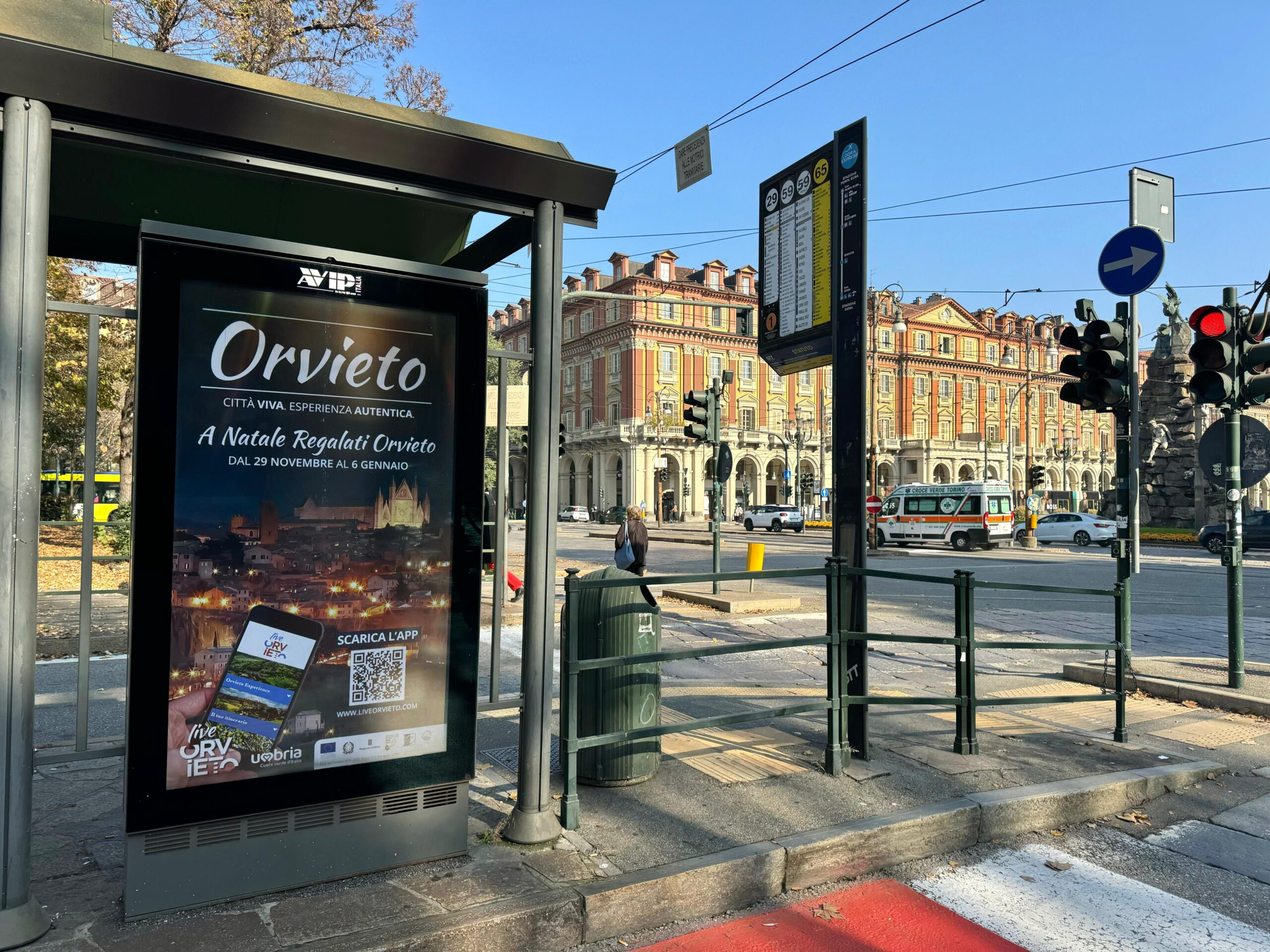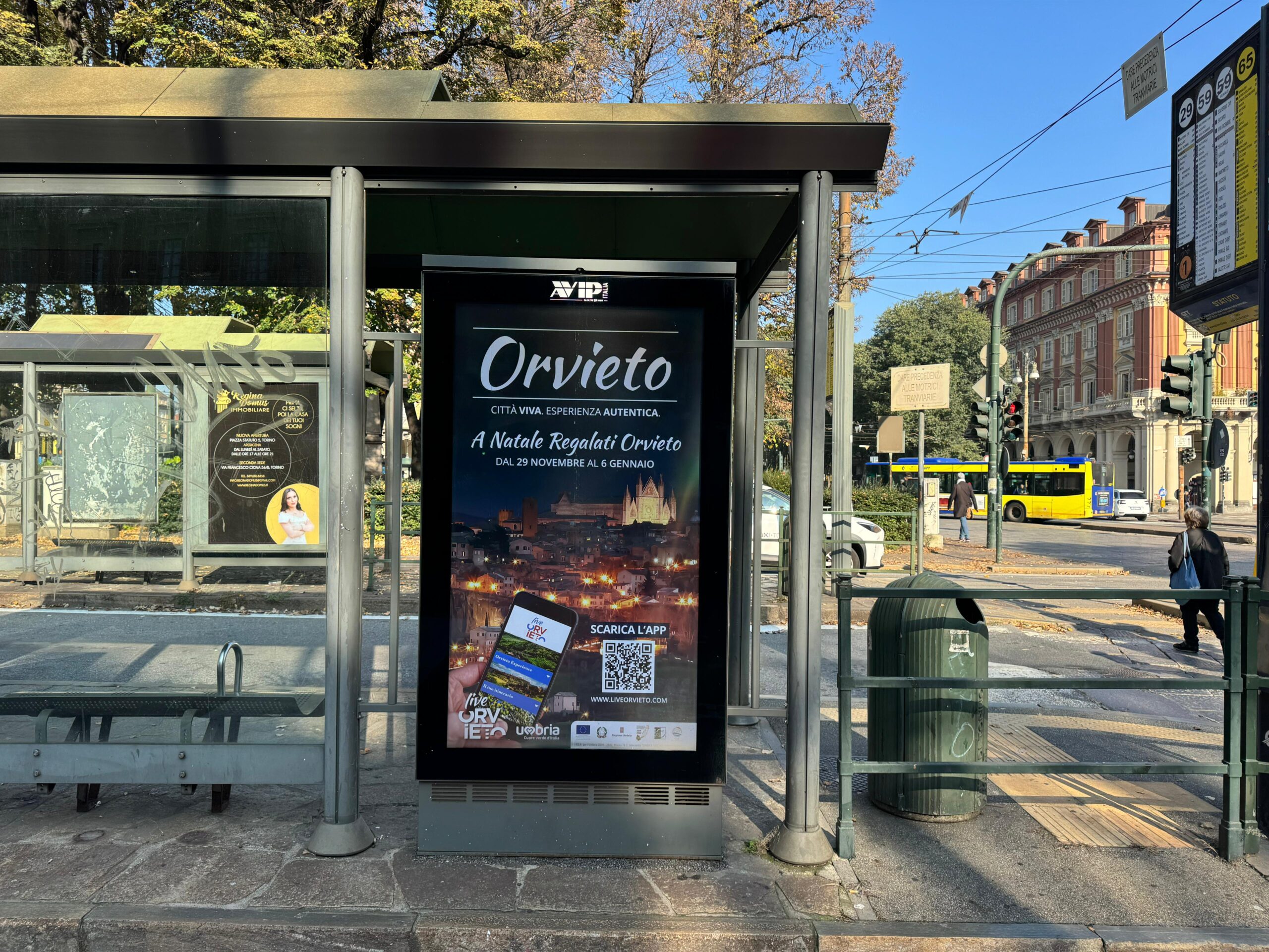 Da ieri, lunedì 4 novembre, il suggestivo skyline della Rupe si trova su cinque schermi digitali posizionati sugli snodi più rilevanti del centro di Torino: Porta Susa-Piazza Statuto, Corso Vinzaglio-Corso Vittorio-Bengasi, Piazza Repubblica-via Milano-Bengasi, corso Martino, corso Vittorio Emanuele-via Accademia Albertina. Oltre all’immagine della città, attraverso un qrcode animato gli utenti saranno invitati a scaricare l’app Orvieto Experience.