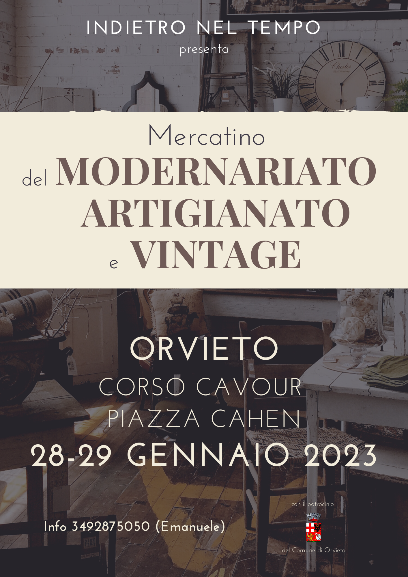 (COMUNICAZIONE) ORVIETO – Torna in Corso Cavour il Mercatino del Modernariato Artigianato e Vintage organizzato da “Indietro nel Tempo”. Tre gli appuntamenti già fissati in calendario: 28-29 gennaio, 25-26 febbraio e 25-26 marzo 2023.