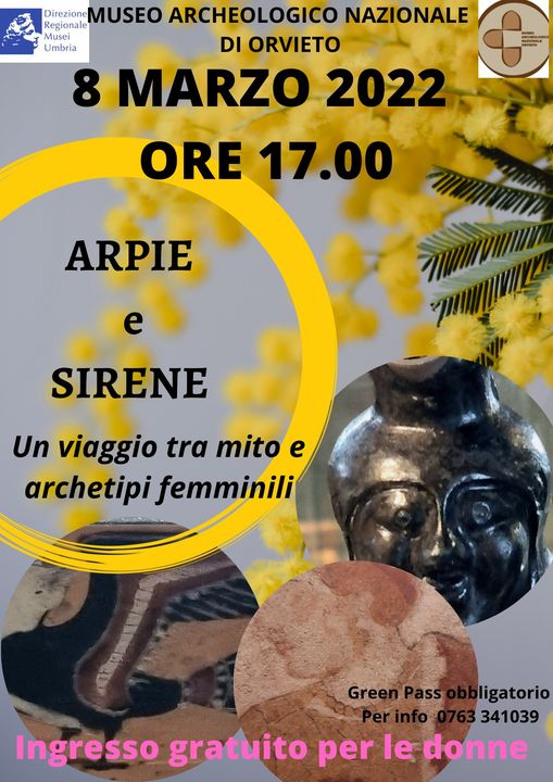 (ON/AF) – ORVIETO – In occasione della festa della donna, Martedì 8 marzo alle ore 17 al Museo archeologico nazionale di Orvieto in piazza Duomo, è programmata una visita guidata tematica dal titolo “Arpie e sirene, un viaggio tra miti e archetipi femminili”.