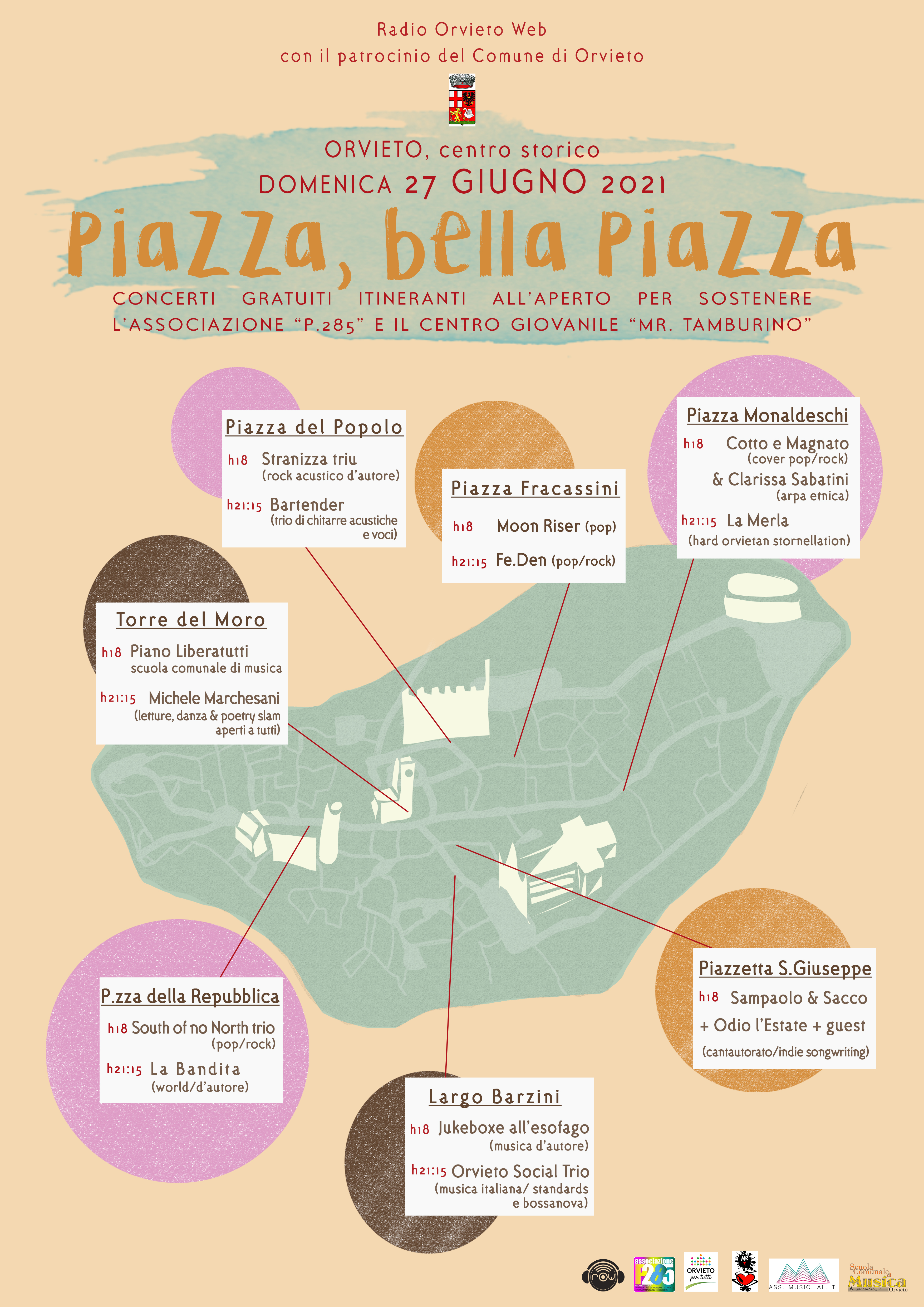 Di seguito il programma di “Piazza Bella Piazza” (location, orario e artisti):