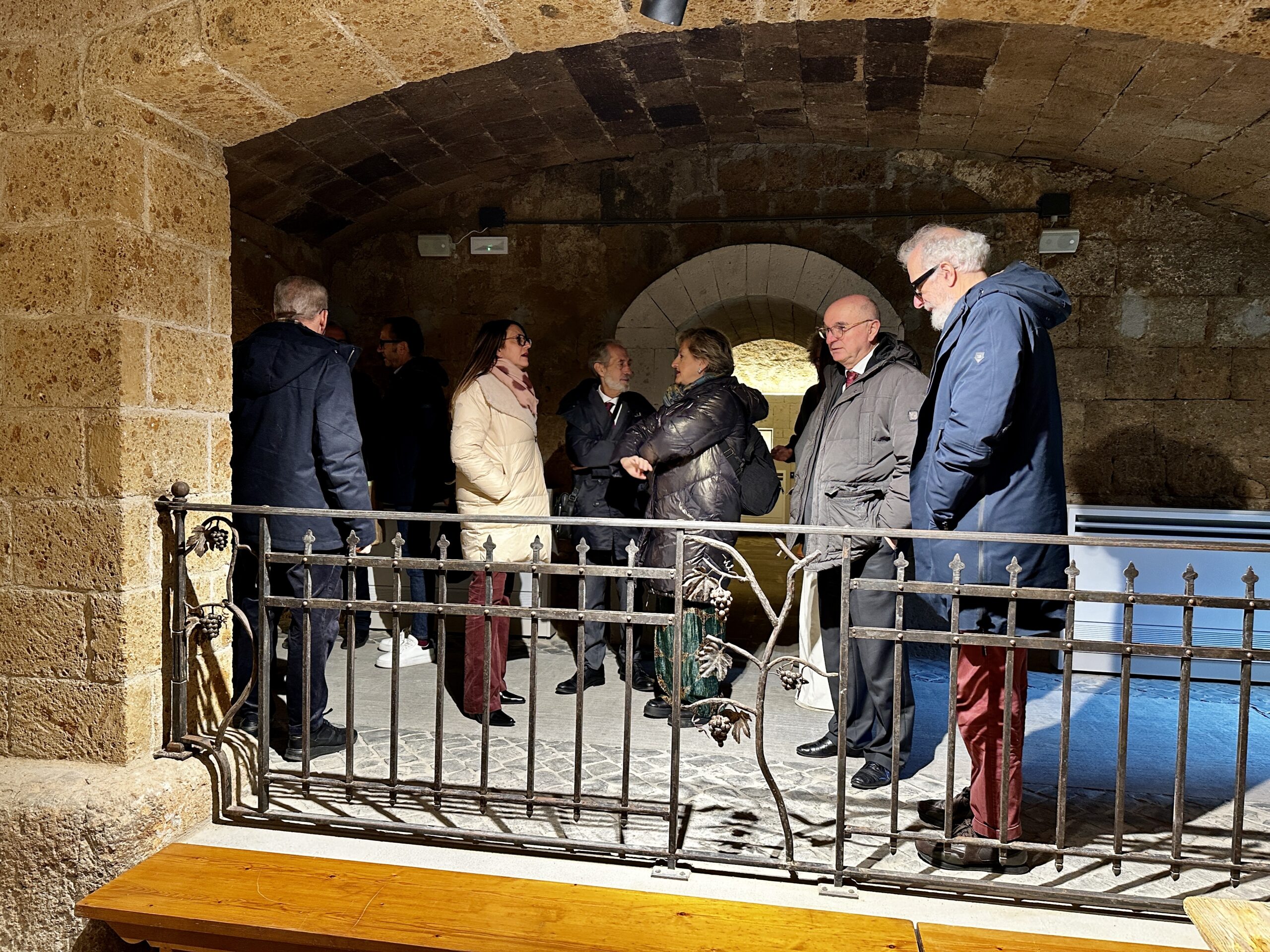 “Arriva a compimento – ha detto il sindaco di Orvieto, Roberta Tardani – un importante intervento di riqualificazione che restituisce alla città uno dei suoi immobili più affascinanti e suggestivi. I lavori si sono conclusi ad aprile al termine di un lungo e non semplice percorso. Quando ci siamo insediati cinque anni fa avevamo infatti ereditato un progetto a cui bisognava dare forma ma che aveva innanzitutto bisogno di risolvere delle questioni formali con la Provincia di Terni sulla convenzione di utilizzo della struttura che abbiamo superato grazie alla collaborazione e agli ottimi rapporti tra i due Enti. La mission del nuovo Palazzo del Vino e dei prodotti della terra è racchiusa nell’obiettivo che più in generale ci siamo dati come amministrazione: puntare sulle vocazioni di questo territorio e valorizzare le sue eccellenze per farne fattori di crescita e di sviluppo della città. Vogliamo che questa struttura – ha aggiunto – diventi un vero e proprio polo di riferimento del mondo agroalimentare ed enogastronomico del territorio capace di mettere insieme tutti i soggetti del settore, pubblici e privati. Un luogo dedicato alla conoscenza e al sapere, alla formazione e alla promocommercializzazione ma anche uno spazio ideale per manifestazioni ed eventi, convegni ed esposizioni. Al momento il Palazzo è gestito direttamente dal Comune in attesa dell’avviso per la manifestazione di interesse per la gestione, che uscirà a gennaio, e che dovrà declinare contenuti e obiettivi del progetto. L’auspicio è che il Palazzo del Vino possa lavorare anche in stretta sinergia con il Distretto del Cibo il cui progetto illustrato oggi è fortemente connesso con le finalità di questa struttura”.