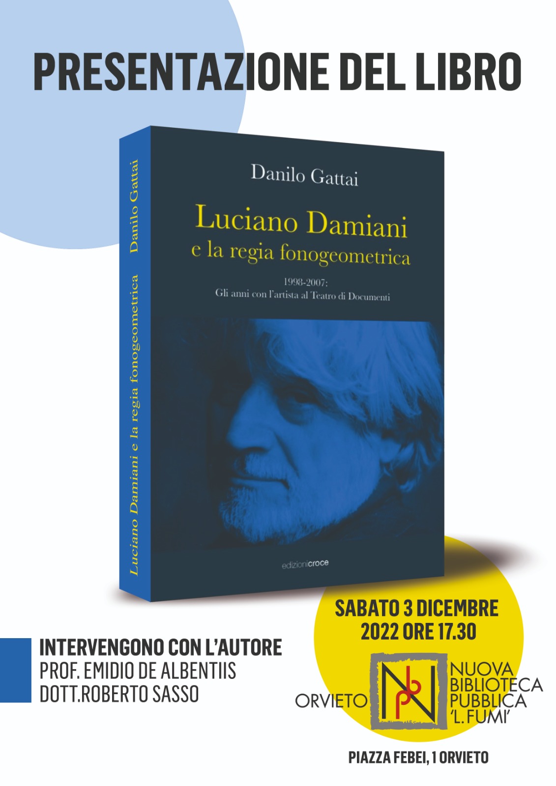 Il libro dal titolo “Luciano Damiani e la regia fonogeometrica” di Danilo Gattai, docente presso l’Accademia di Belle Arti di Perugia, verrà presentato Sabato 3 dicembre alle ore 17:30 presso la Sala accoglienza della Nuova Biblioteca Pubblica “Luigi Fumi” di Orvieto.