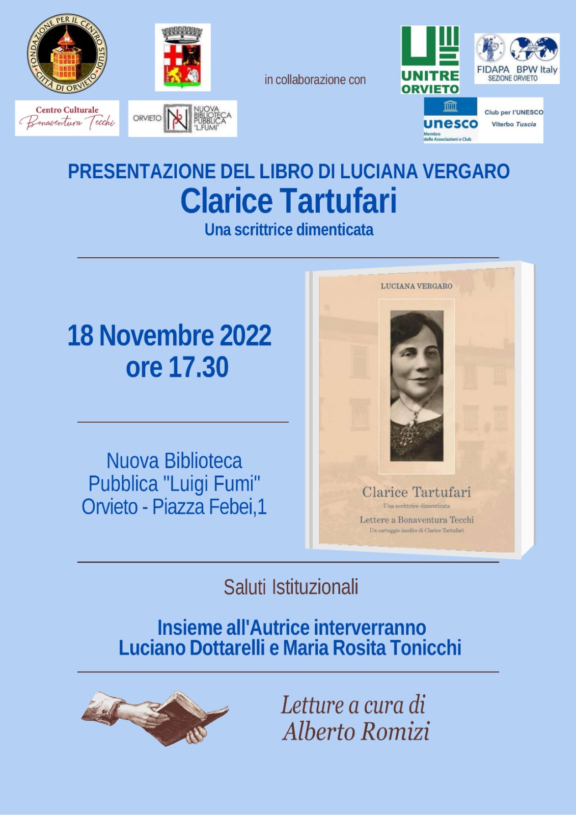 • Venerdì 18 novembre h 17:30 presso la Nuova Biblioteca “Luigi Fumi” di Orvieto