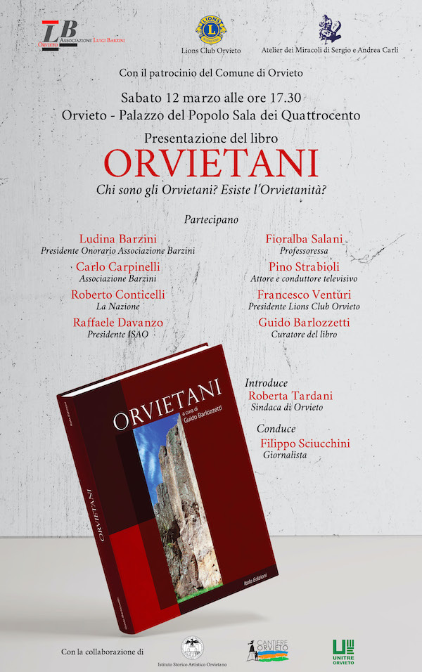 Presentazione del volume “Orvietani” curato da Guido Barlozzetti. Sabato 12 marzo h 17:30 al Palazzo del Popolo