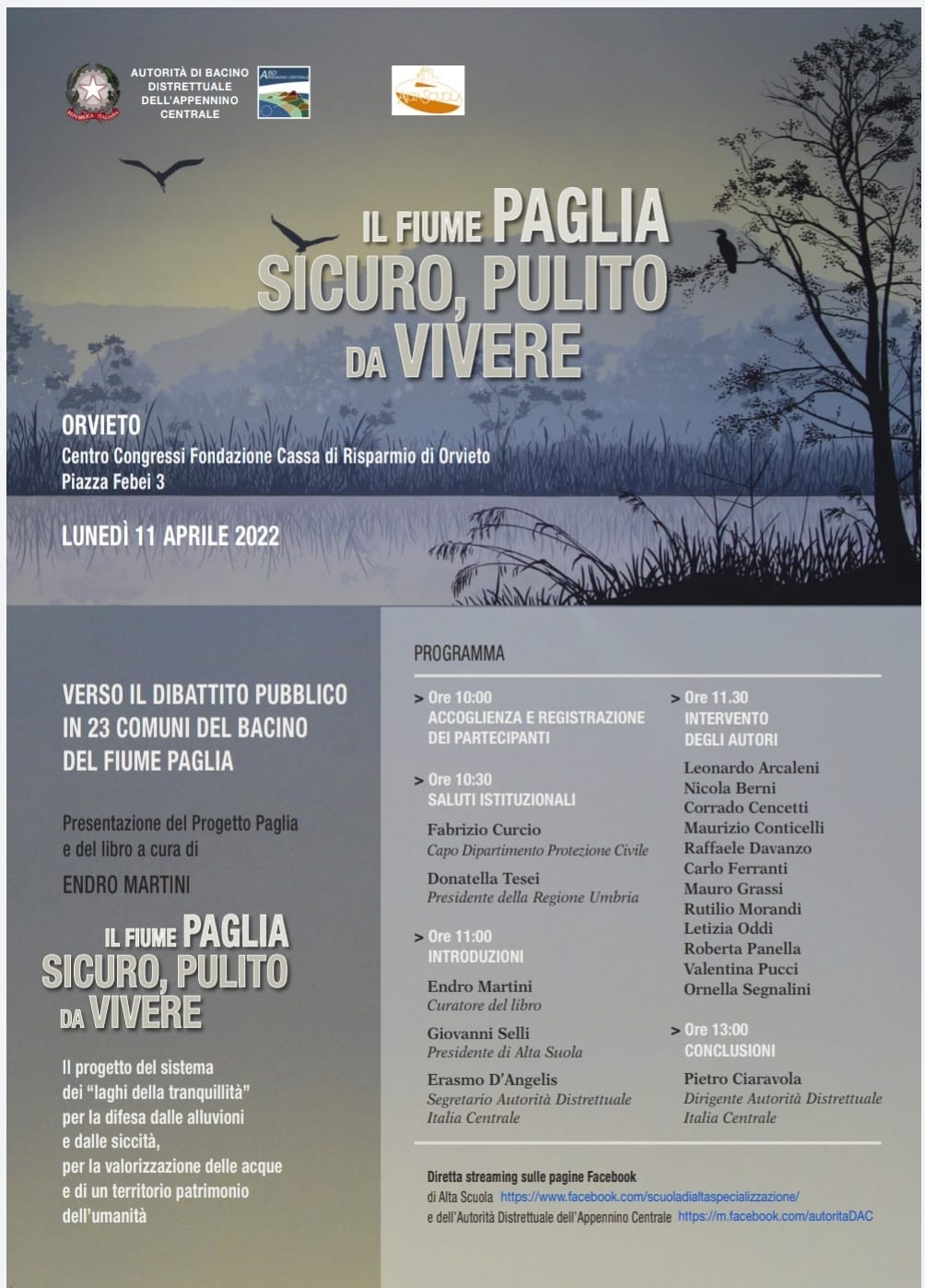 (ON/AF) – ORVIETO – Sarà presentato lunedì 11 aprile a partire dalle ore 10 all’Auditorium di Palazzo Coelli, sede della Fondazione Cassa di Risparmio di Orvieto (Piazza Flebei, 3) il Progetto Paglia raccontato nel libro (in distribuzione gratuita) intitolato “IL FIUME PAGLIA SICURO, PULITO DA VIVERE” a cura di Endro Martini.