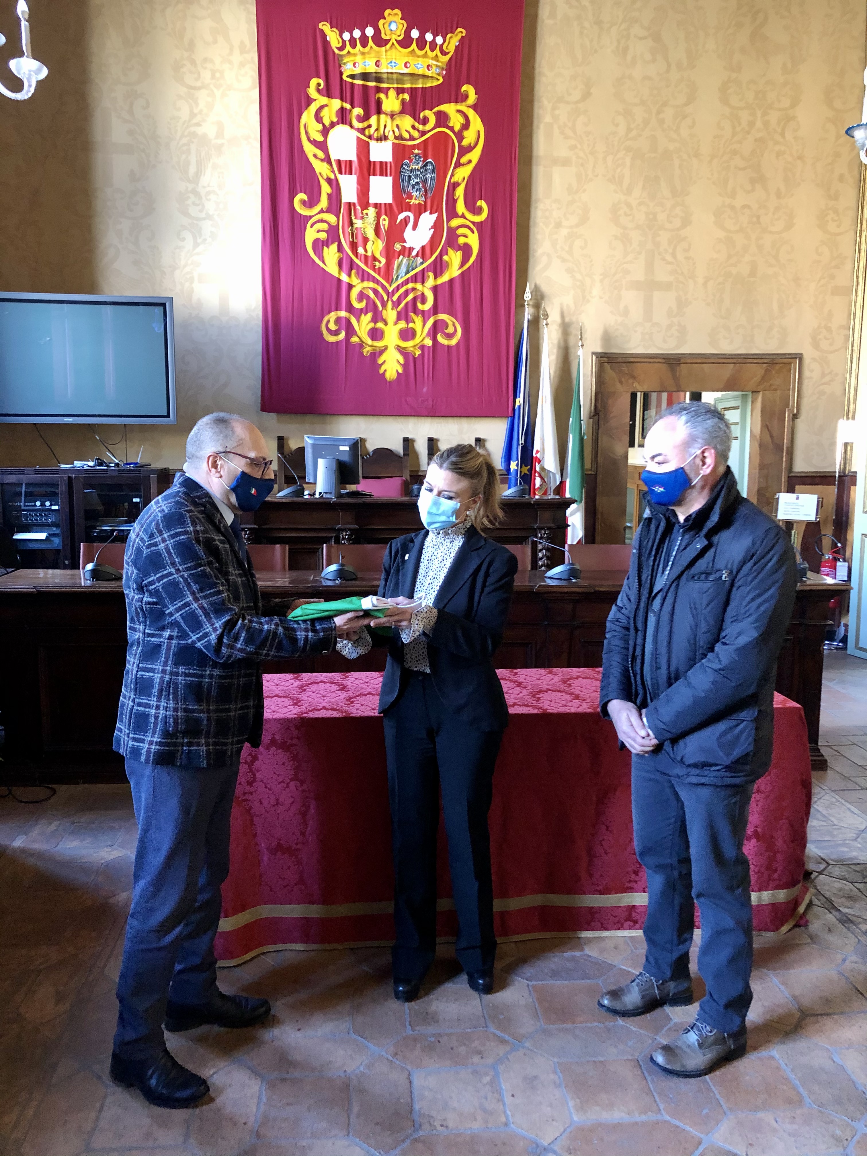 (ON/AF) – ORVIETO – Questa mattina nella sala consiliare del Comune di Orvieto i rappresentanti dell’Associazione nazionale Cavalieri al Merito della Repubblica, Giacomo Gusmano e Pietro Federico, hanno consegnato una bandiera italiana al Sindaco di Orvieto, Roberta Tardani, nell’ambito del progetto “Decoro della bandiera”.