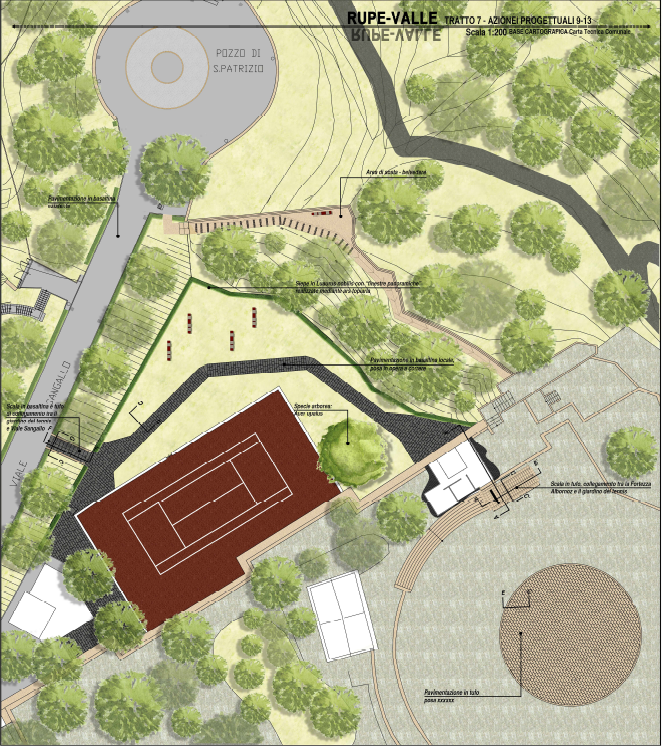 Sarà poi riqualificato l’antico percorso de “Le Piagge” che unisce la Valle e la Rupe anche attraverso interventi sul contesto paesaggistico e ambientale. Verrà infatti realizzato un Giardino delle erbe aromatiche, saranno recuperati antichi vigneti e frutteti ormai nascosti dalla vegetazione da utilizzare per piccole produzioni di filiera corta e a scopo educativo, in collaborazione con gli Istituti superiori del territorio, saranno infine realizzate aree verdi attrezzate.