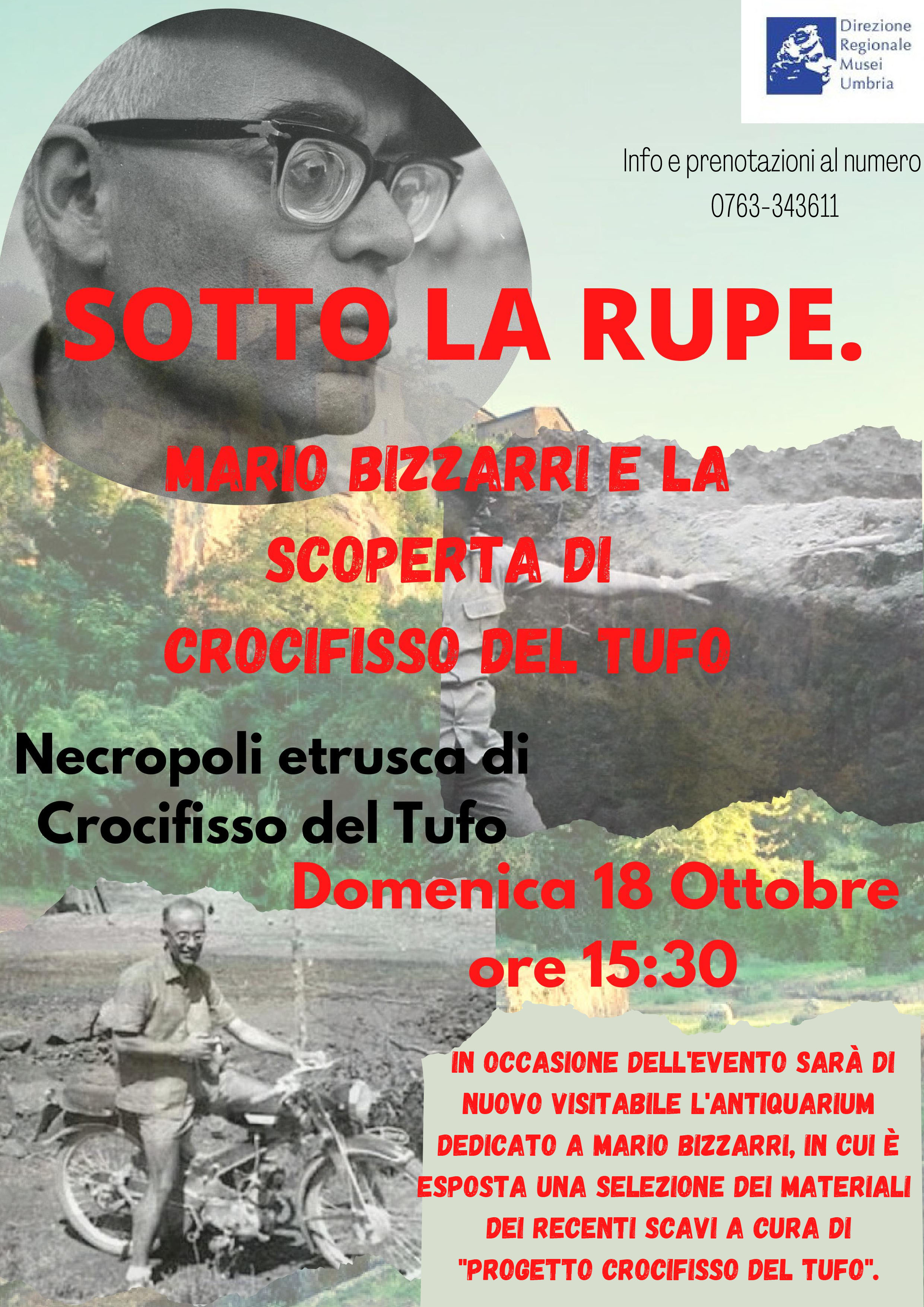 Seguirà un appuntamento speciale con la storia della scoperta della necropoli raccontata dal figlio, l’archeologo Claudio Bizzarri dal titolo “Sotto la Rupe. Mario Bizzarri e la scoperta di Crocifisso del Tufo”. Info e prenotazioni 0763-343611.