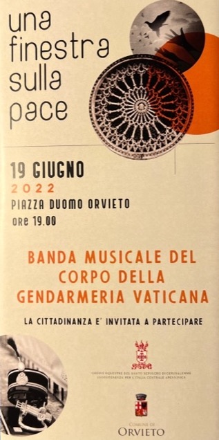 “Una finestra sulla Pace”: Concerto della Banda del Corpo della Gendarmeria Vaticana. Orvieto, Domenica 19 giugno 2022