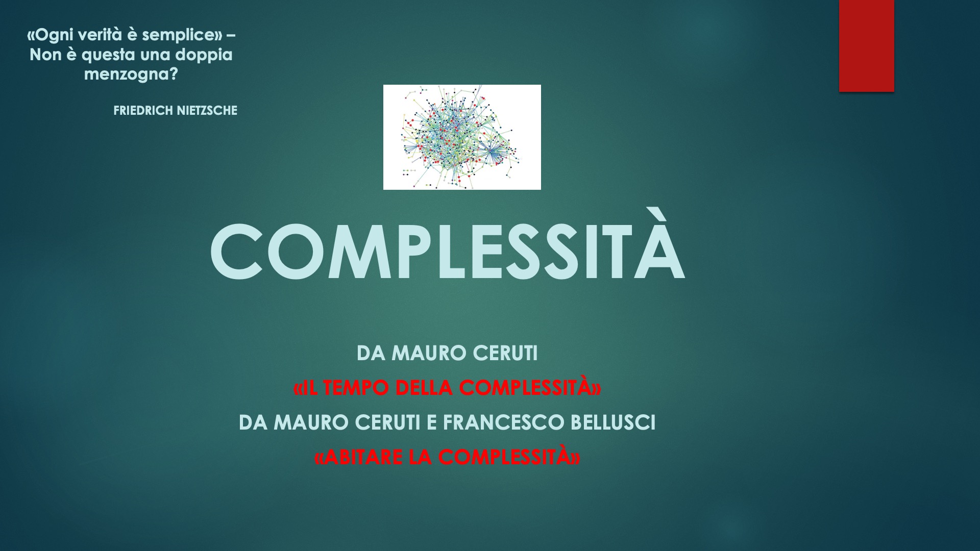 “Complessità” è il primo dei quattro incontri che si terranno con cadenza settimanale nell’ambito del percorso intitolato Parole chiave nel tempo della complessità che svilupperà appunto temi quali: la complessità, l’indeterminazione, il limite e il progresso.