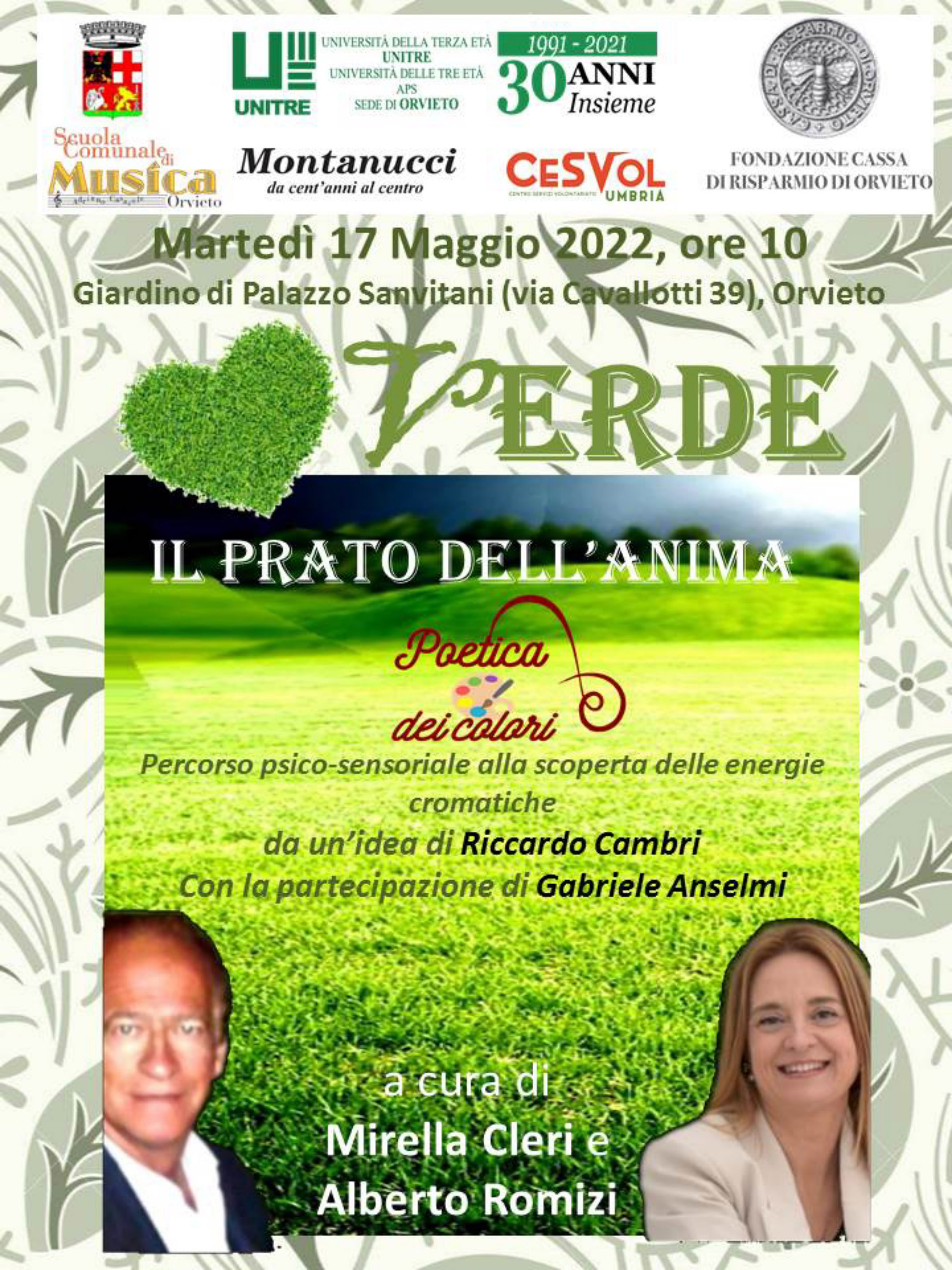 Unitre Orvieto riprende il percorso sull’emozionalità dei colori. Verde – Il prato dell’anima è il titolo dell’incontro in programma Martedì 17 maggio nel giardino di palazzo Sanvitani