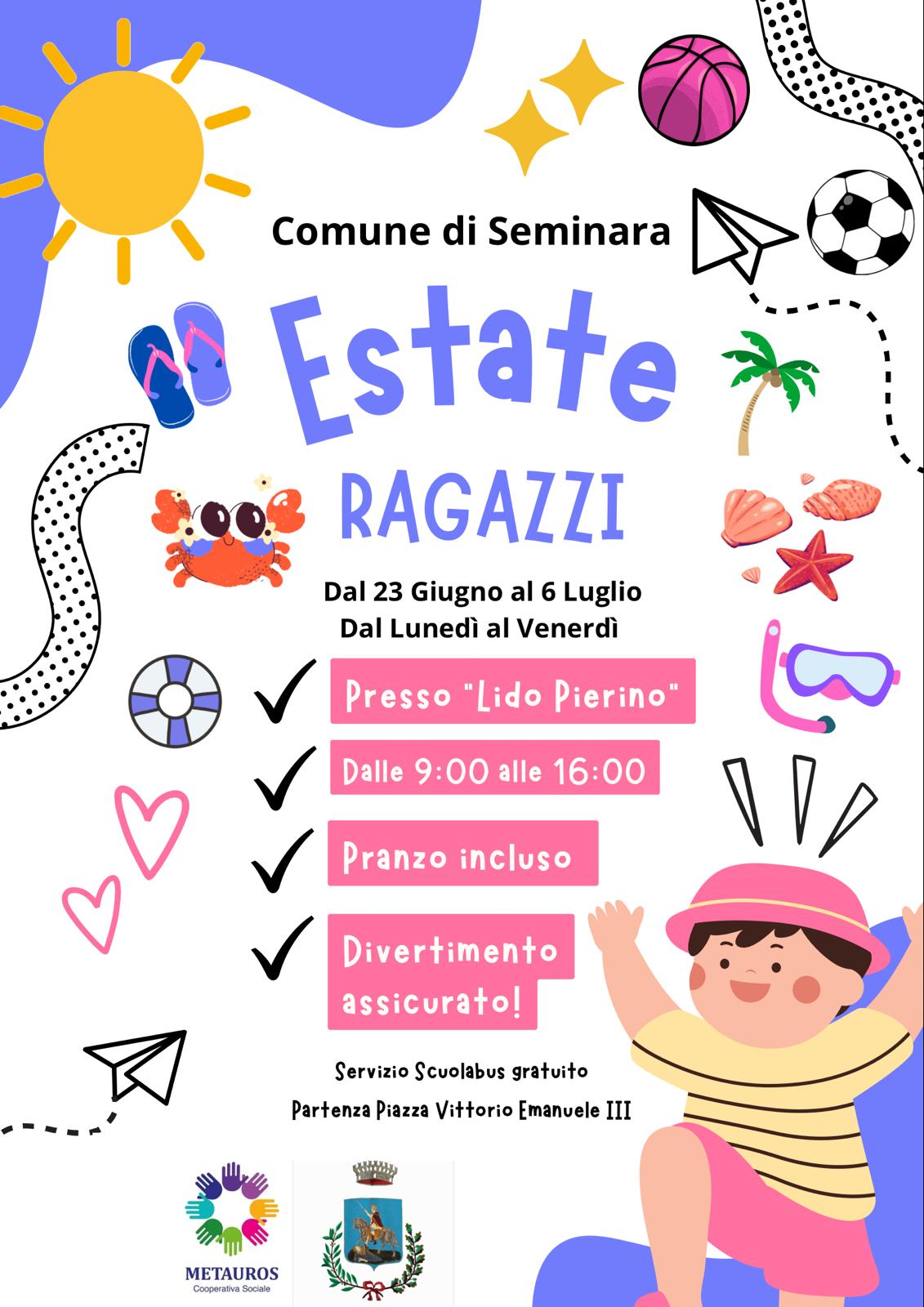 I Centri Estivi si svolgeranno presso una struttura convenzionata con il Comune di Seminara incluso trasporto e pranzo;